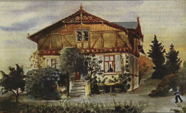 Das schöne Bild dieser alten Villa erreicht die AZ-Redaktion aus Recklinghausen. Dr.Eva M. J Schmid berichtet, dass sich das Haus an der Rüdesheimer Straße 81 befand. Es gehörte ihrem Großvater, Wilhelm Rumswinkel, der weiter außerhalb eine Fabrik für Straßenbeläge und Teerpappe besaß., Er muss die romantische Villa spätestens im Jahr 1885 gekauft haben. Damals heiratete er die aus Brasilien stammende Veronika Hoenes. Bei Familienfesten wurde im Garten die brasilianische Flagge gehisst. Das Aquarell soll eine Verwandte der Familie gemalt haben, etwa um 1900 herum."Über das Haus und seine Bewohner gäbe es noch manches zu erzählen", schreibt Frau Dr.Schmidt an die AZ. Da war , noch die Auswanderung des Eduard Hoenes, die Rückkehr seiner Zwillingstöchter, die beim Ball im Casino die Kavaliere verwirrten,. und noch manche Geschichte mehr...